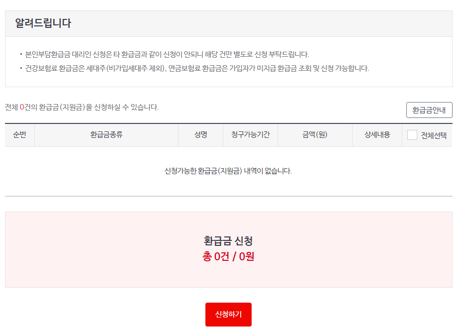 한번에 조회 후 환급신청까지 하실 수 있으니 건강보험 가입자라면 꼭 확인하셔서 숨은 돈을 놓치지 마세요!